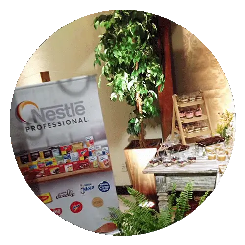 Temos também uma equipe de profissionais de cozinha para executar todos os serviços de alimentação que variam entre coquetel com mini porções e jantares nos formatos buffet americano ou à francesa.